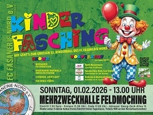 Bereits zum 32. mal veranstaltet der Fasanerie-Nord am 01. Februar seinen großen Kinderball mit über 600 Gästen und vielen Aufführungen. Für die Musik sorgt „Nightlight“ Albert und für die weitere Unterhaltung werden das Sun Dance Studio, die Kindergarde Oberschleißheim und der Moosacher Faschingsclub dem FC Fasanerie-Nord ihre Aufwartung machen.