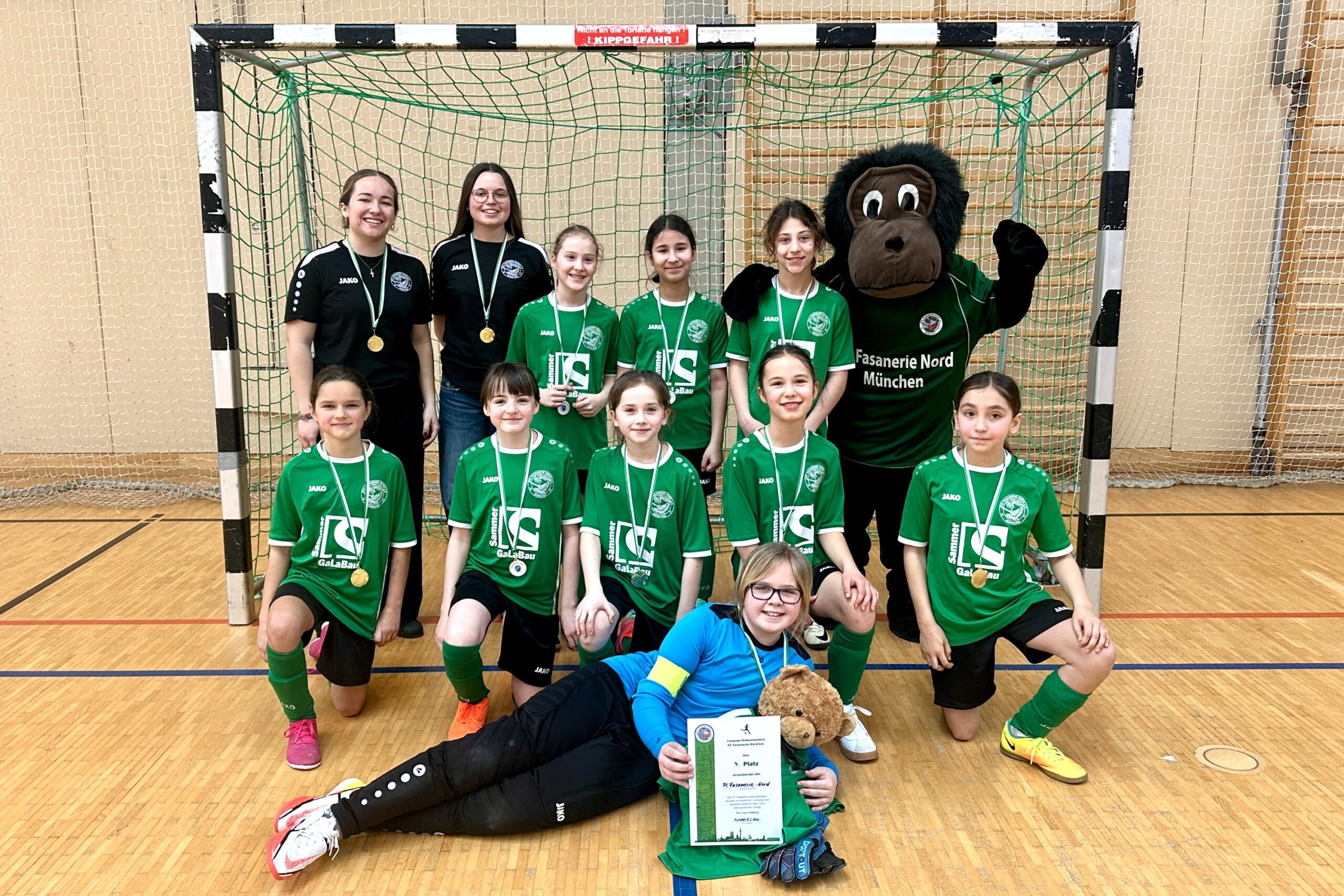 München setzte es eine 0:1 Niederlage, so dass es im abschließenden Spiel gegen den TSV Gersthofen um Platz 7 & 8 ging. Wieder einmal musste ein 7-Meter-Schießen die Entscheidung bringen, das der Gast aus Gersthofen mit 2:1 Toren für sich entscheiden konnte. Damit landeten die Fasanenmädels immerhin auf dem 4. Platz im Turnier, das der SV Nord mit 1:0 Toren gegen den FC Augsburg gewinnen konnte.